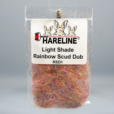 Hareline Light Shade Rainbow Dub: Iridescent synthetic dubbing material for fly tying. Soft, flashy fibers create vibrant, light-catching fly bodies with multi-color shimmer.
