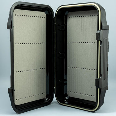 The Go-To Fly Box 1201 model is a compact, reliable box for storing fishing flies. Made from durable plastic with a snap-tight closure, this streamlined design provides straight-forward organization without leaf inserts. The box features foam slits for securing flies and protecting their hooks. Its slim profile makes it convenient to carry in vest pockets or fishing bags.