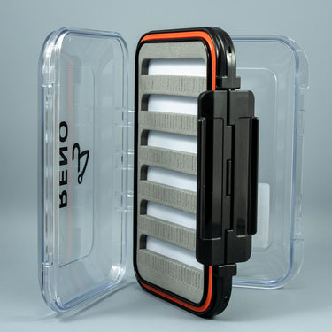 Double Sided Fly Box (two sizes Medium and Large) is a versatile storage solution featuring access from both sides for maximum organization. With its waterproof seal, each side opens independently and contains foam inserts for securing flies.