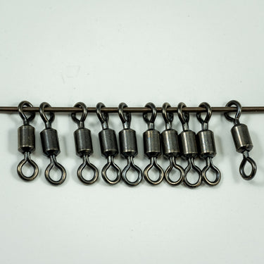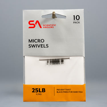 Micro swivels are great for rigging leaders and tippet material on fly rods. They prevent leader twist and create a simple retie point. Black finish for wary fish. Available in three sizes: