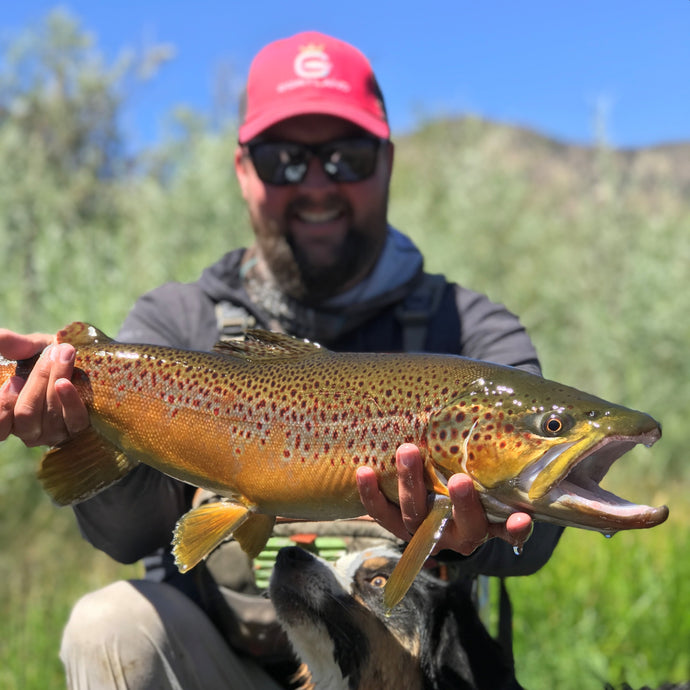 The East Walker (EW) flows out of Bridgeport Reservoir and flows southeast towards the Nevada border (2 hours south of Reno). The river meanders downhill through beautiful meadows and canyons while the Sweetwater range towers above. Most notably, the “EW” is home to a large population of surprisingly large brown trout. Sacramento Perch get flushed out of Bridgeport Reservoir and provide an easy meal as they tumble down stream. The EW is also home to many small baitfish and large aquatic insects (golden stones). In summary, this river is the place to be when targeting big aggressive brown trout.