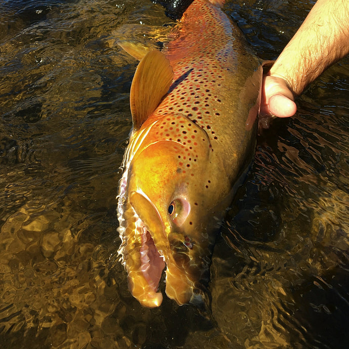 After the summer heat dissipates, autumn fills the air and the fishing continues to be strong. After swimming hard all summer and maintaining their spot in fast pockets, the fish push back into traditionally slower runs with calmer current. Continuing into late fall, the brown trout prepare for their spawn and begin to feed on big meals. Fishing an articulated streamer this time of year can produce some of the most aggressive grabs (and you usually see it all happen).