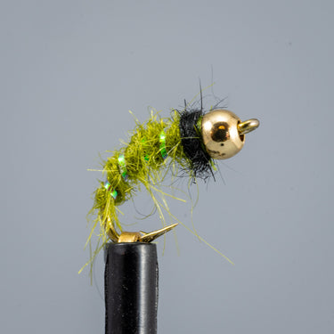 This nymph is a caddis larva pattern that uses Krystal Flash for the ribbing to give it a little extra attraction. Bead head gets these nymphs down quickly. This is a great dropper fly pattern underneath a large caddis dry or other searching dry flies.