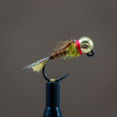 The Jig TNT is a jigged mayfly tied with a tungsten bead. This fly features multiple flashy materials paired with a natural olive body. This fly works great as a Pale Morning Dun in the summer months.