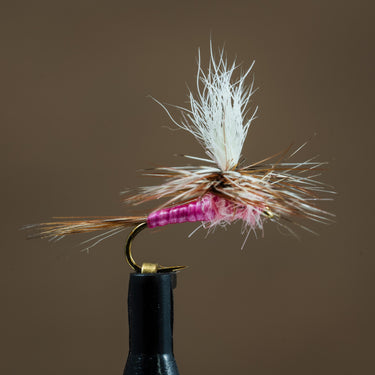 The Parachute Pink is a dry fly that has the shape of a mayfly adult. This is a great choice during a number of maylfy hatches when fish wont eat anything else. This has quickly become a favorite at the shop and can be fish through hatches of PMD's and BWO's. Available in size 16 and 18.