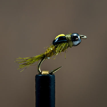 The Split Case BWO is tied on a straight shank hook with a tungsten bead. This pattern imitates Blue Winged Olives and other mayfly nymphs very well. The yellow hot spot signifies an emerging mayfly and fishes best towards the early stages of a hatch. This is a staple throughout the winter months on the Truckee River and other local waters.
